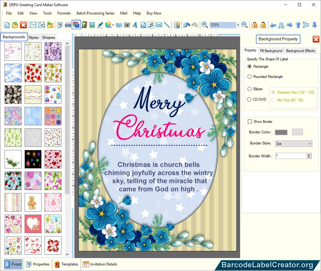 Set card background using Background properties (property, fill background, Background effects) as we have shown in above screen.